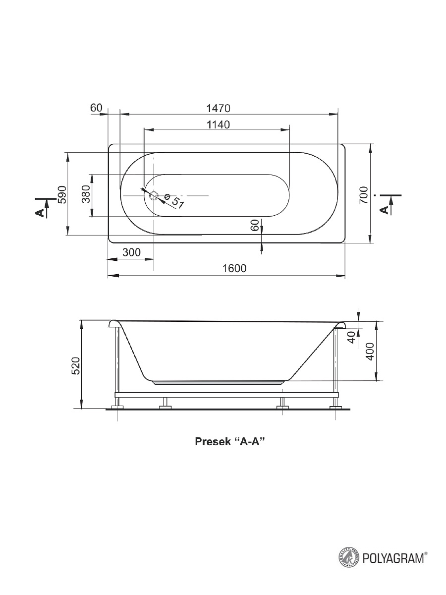 Kada sa oplatom i postoljem 160 x 70 cm Klasik Polyagram